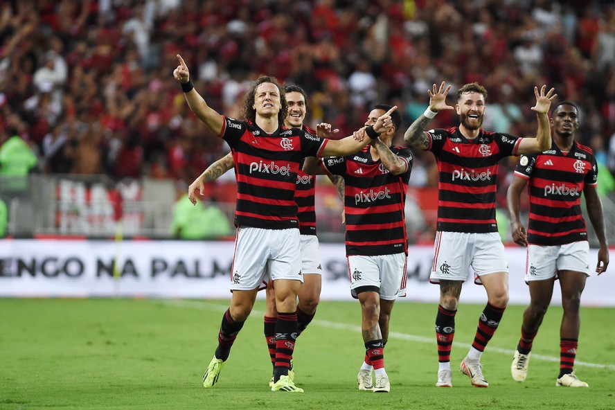 David Luiz marcou o gol da vitória do Flamengo sobre o Bahia — Foto: Alexandre Durão/Agência O Globo