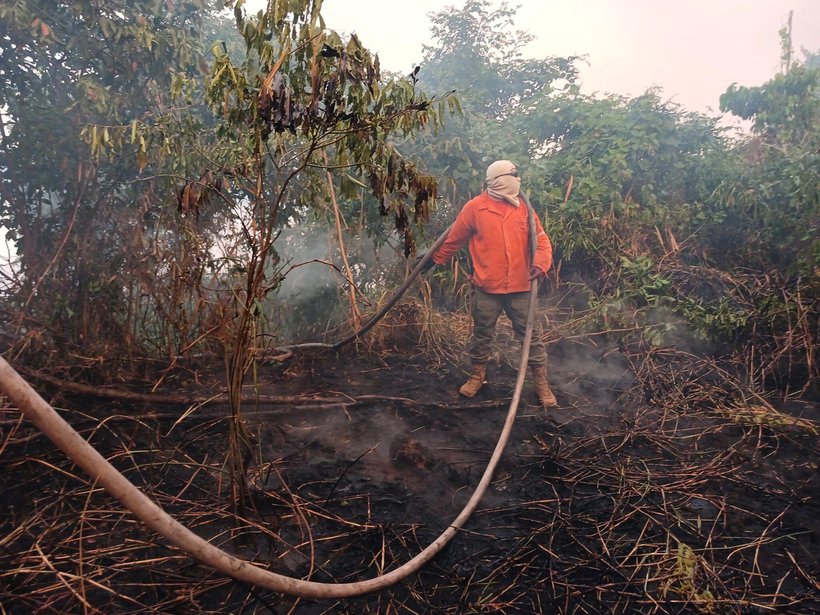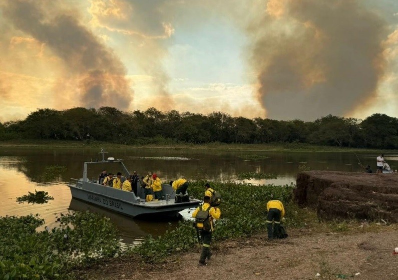Combate a incêndio na região do Paraguai-mirim,saindo de Corumbá (MS) — Foto: Brigada Alto Pantanal/IHP/09-06-2024