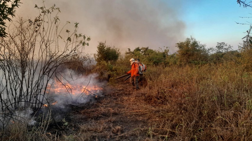 Brigada Alto Pantanal atua para reduzir incêndio em Paraguai-Mirim — Foto: IHP (Instituto Homem Pantaneiro)