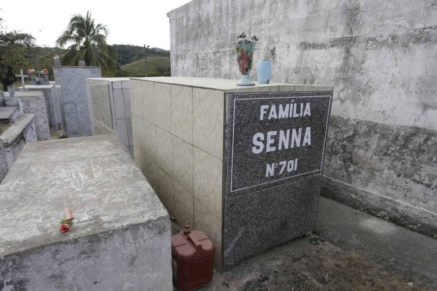 Renê Senna divide a sepultura com mais três parentes. Sepultura não tem foto de identificação,estátua ou luxo — Foto: Foto Domingos Peixoto