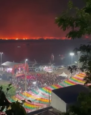 Vídeo mostra incêndio como plano de fundo para Arraial do Banho de São João em Corumbá (MS) — Foto: Reprodução/Instagram