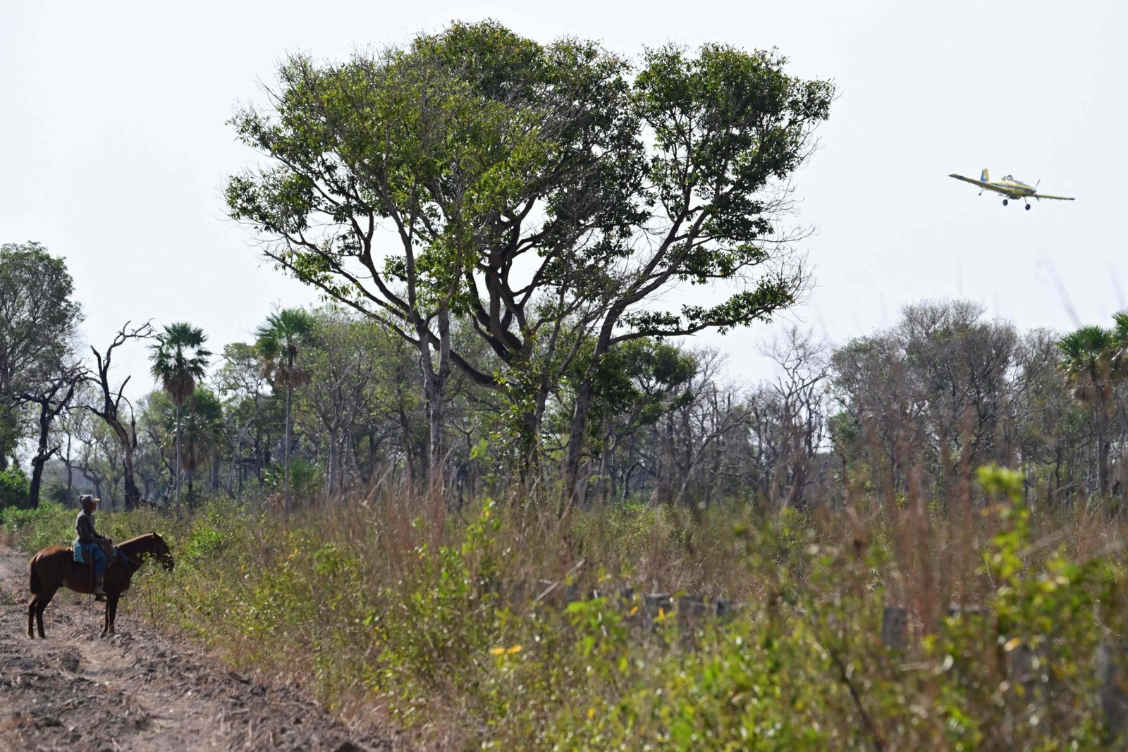 Avião do ICMBio sobrevoa área atingida pelas chamas no Pantanal — Foto: Pablo PORCIUNCULA / AFP