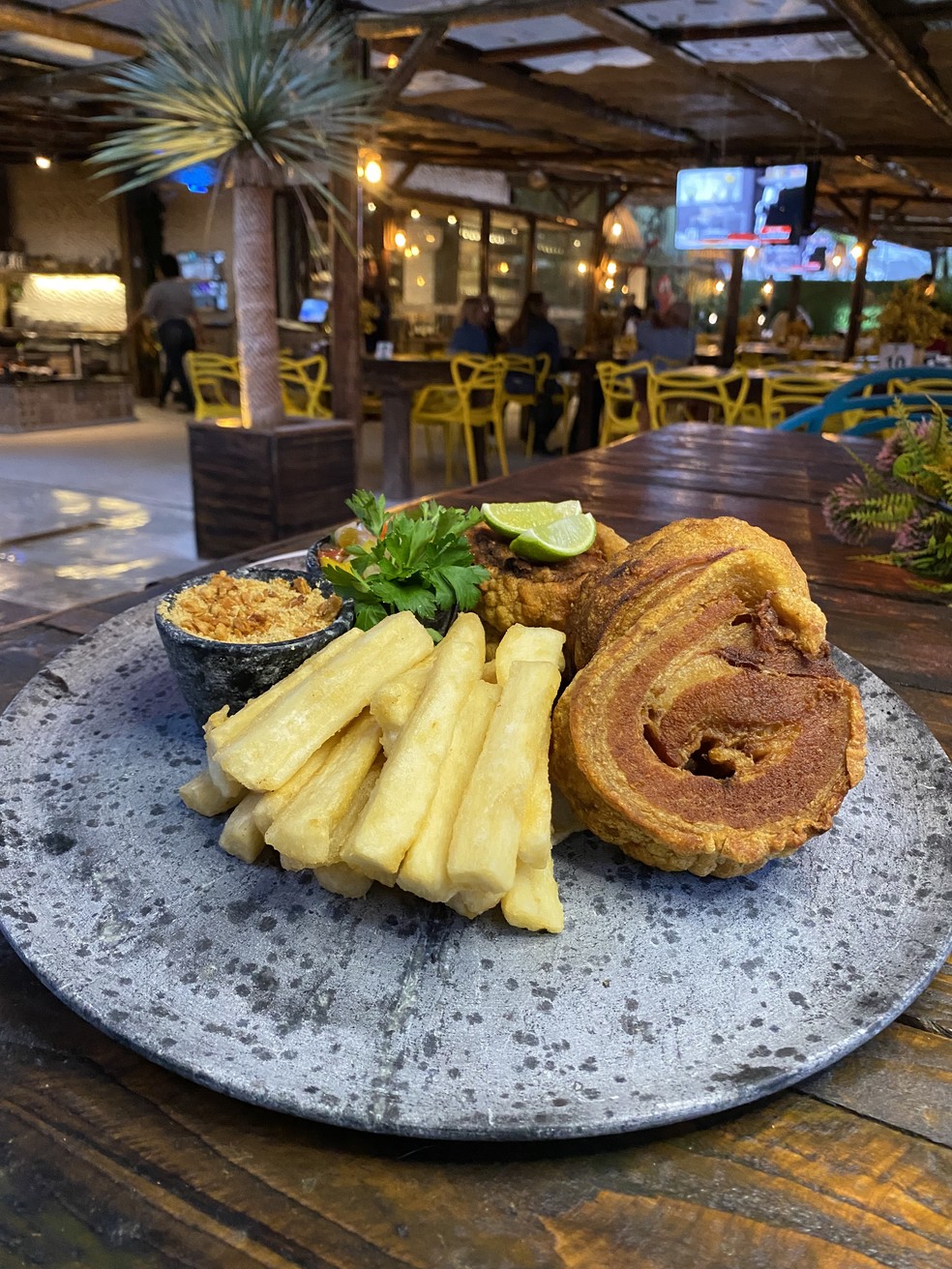 Tonamata: casa oferece o torresmo de role em cama de aipim,vinagrete,farofa e manteiga — Foto: Divulgação/Movimenta Comunicação