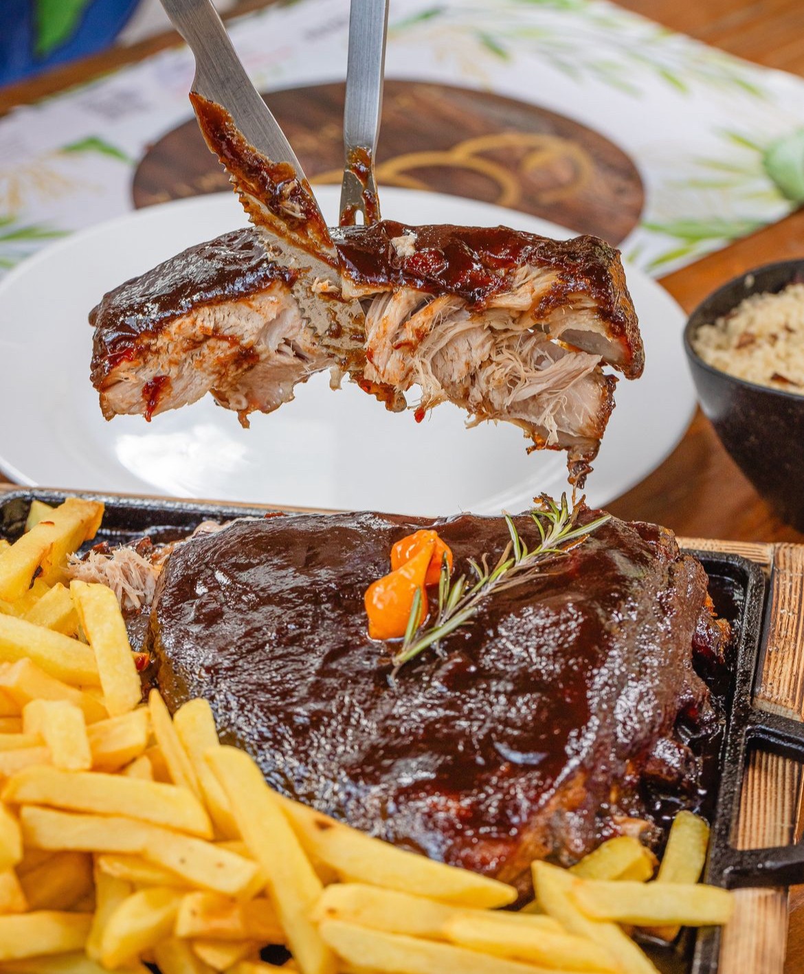 No Ecco Gastronomia,a costela de porco defumada e grelhada é preparada por 24 horas em baixa temperatura — Foto: Divulgação