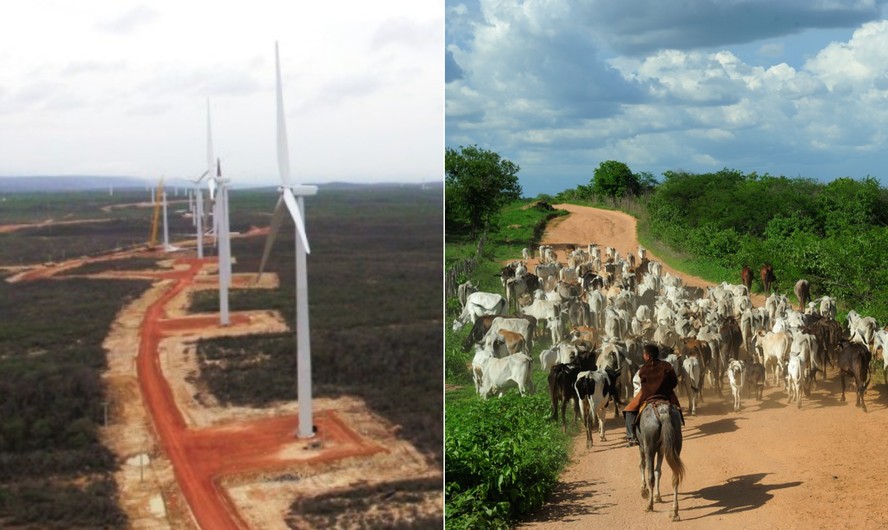 Parque de produção de energia eólica no Ceará e a cidade de Crateús,que poderia perder parte do território para o Piauí — Foto: Divulgação e Fernando Frazão/Agência Brasil
