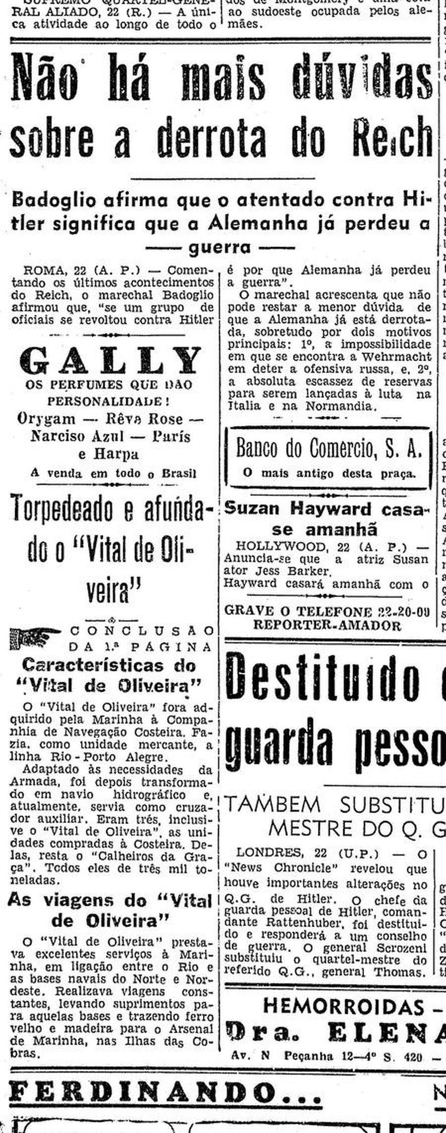 A História do Brasil se cruzou com a história da minha família naquele mês de julho de 1944. A bordo do Vital de Oliveira,estavam seis fuzileiros navais. Todos morreram no naufrágio. Um deles era meu tio-avô.