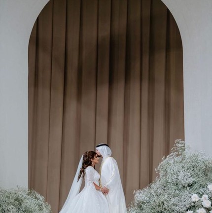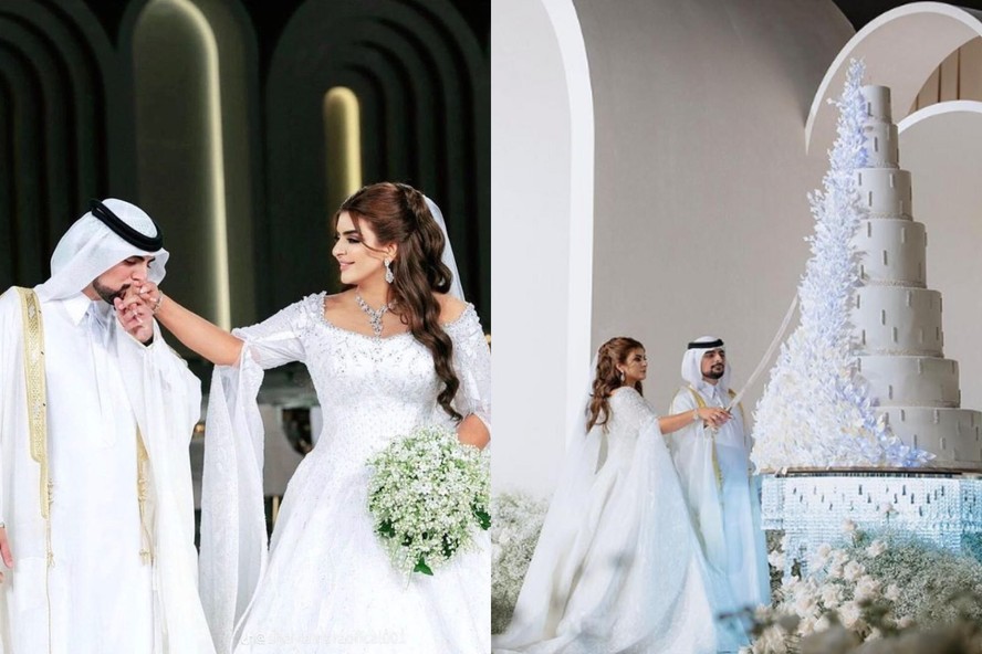 Na ocasião,Mahra — uma dos 26 filhos do xeque Mohammed bin Rashid Al Maktoum,a quem a imprensa internacional dá os créditos pela "transformação" de Dubai em um destino para turismo de luxo e polo global de investimentos — usou um longo vestido branco bordado,assinado pelo estúdio de alta-costura emiradense Ezra Couture.