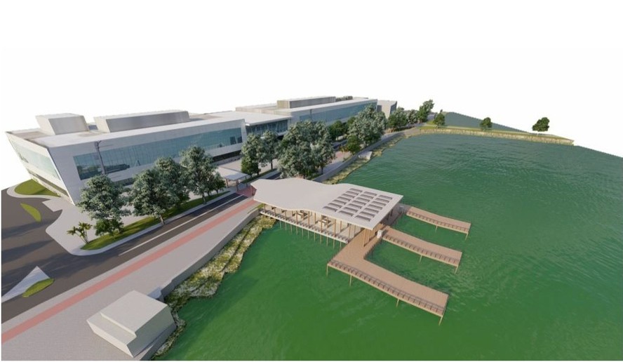 Arte mostra como deve ser a estação das barcas no Aeroporto Santos Dumont — Foto: Divulgação RESUMOSem tempo? Ferramenta de IA resume para você