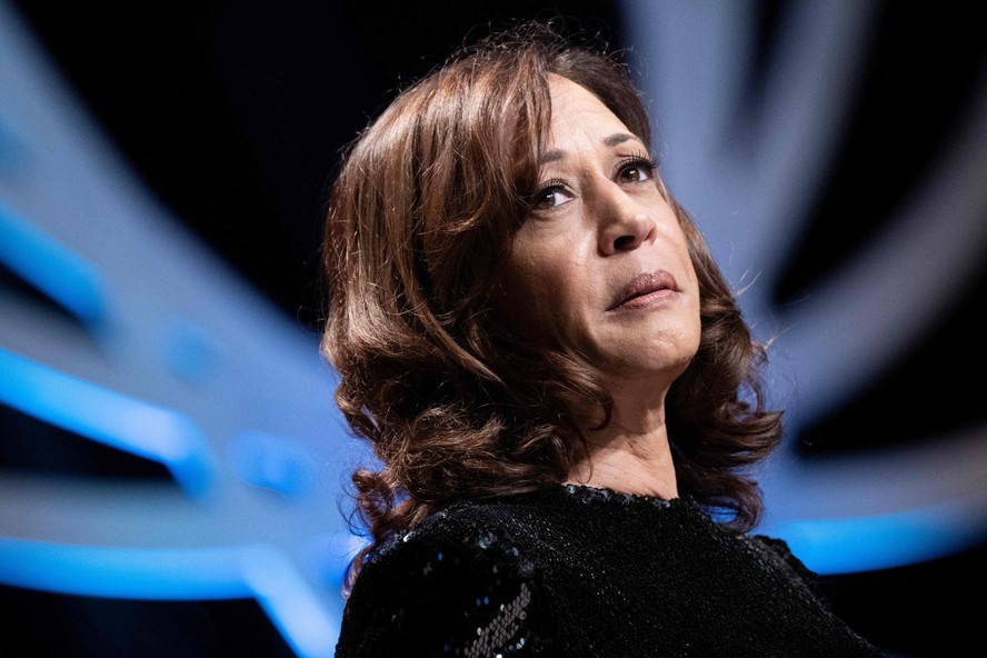 Vice-presidente dos EUA,Kamala Harris fala durante jantar de premiação em Washington — Foto: Brendan Smialowski / AFP