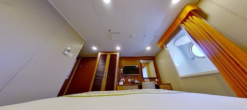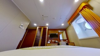 Quartos no navio em que surfistas estão hospedados podem ter até duas televisões