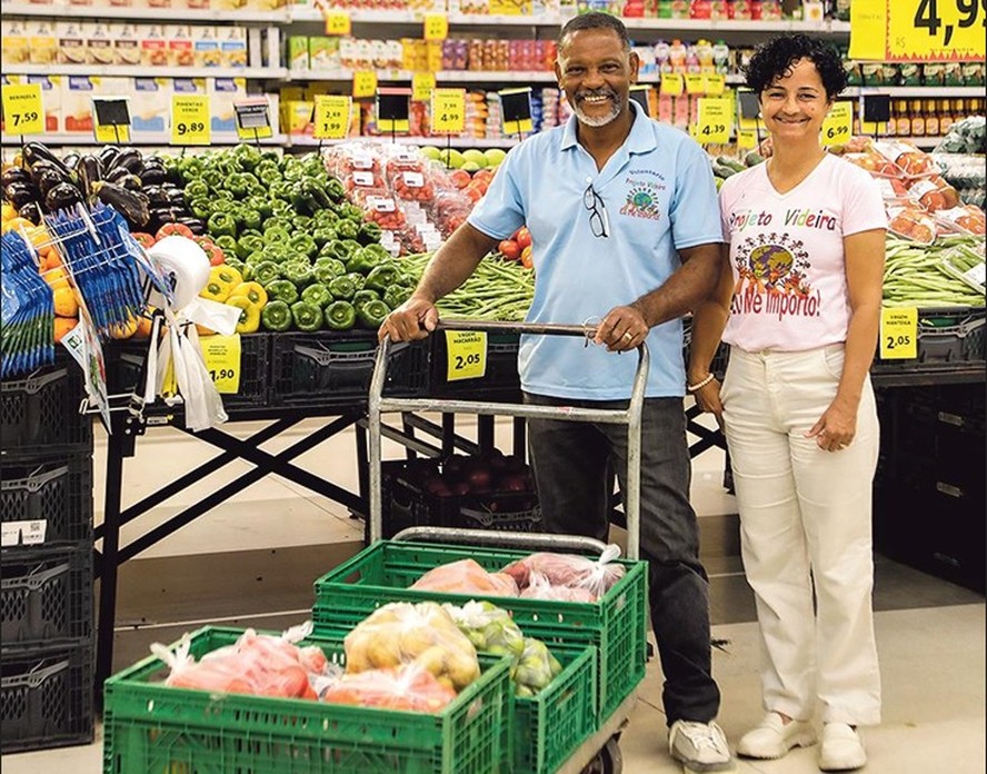Todas as semanas,Janete Flores,de 57 anos,fundadora do Projeto Videira Eu Me Importo,busca frutas,verduras e legumes em uma unidade da rede Extra,do GPA,em São Cristóvão. Ela conta com a ajuda do marido,Flávio. A ONG atende cerca de 400 crianças,entre 3 e 15 anos,que moram na comunidade Chapadão,na Zona Norte do Rio,com reforço escolar no contraturno.