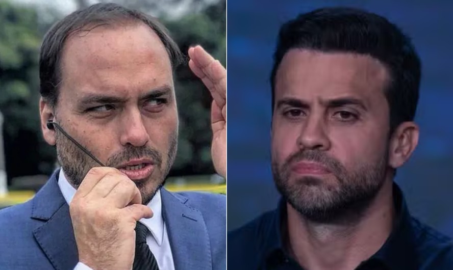 Carlos Bolsonaro criticou Pablo Marçal — Foto: Reprodução e Edilson Dantas/Agência O Globo