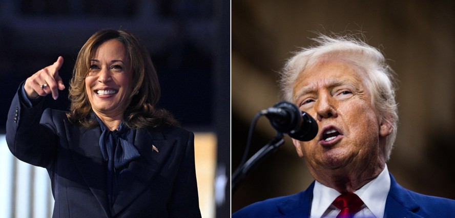 A candidata democrata,Kamala Harris,e o indicado republicano,Donald Trump — Foto: AFP