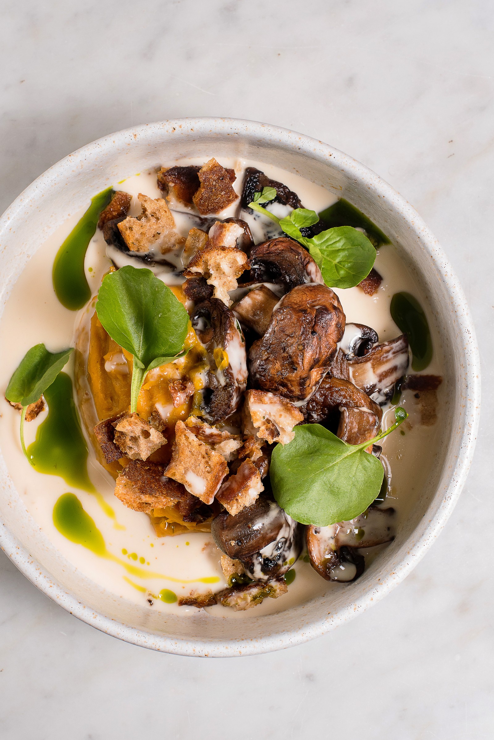 Rudä. Cogumelos grelhados e abóbora cabotiá (R$ 79) feitos em manteiga noisette e com purê de abóbora defumada,farelo de pão tostado e fonduta de queijo Pardinho (98385-7051) — Foto: Divulgação/Vantuil Costa