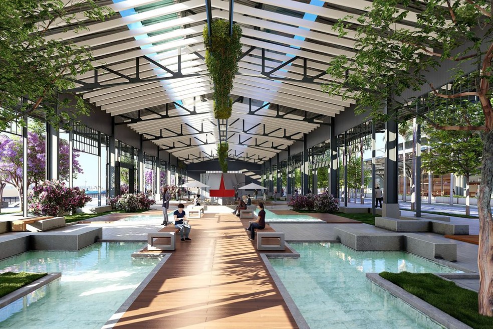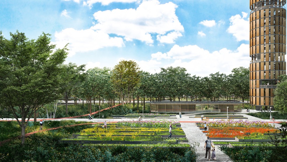 Ilustração mostra como vai ficar o Parque da Cidade,principal legado da COP30,com muita área de paisagismo,espaço gastronômico,núcleo de produção criativa e outras atrações distribuídas numa área de 50 hectares em Belém — Foto: Divulgação / Governo do Pará