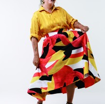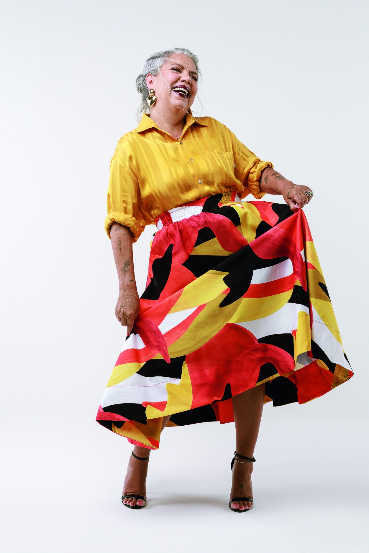 Camisa The Paradise,saia Isaac Silva e sandálias Dolce & Gabbana — Foto: Marcus Steinmeyer