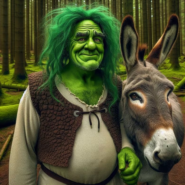Esta é a aparência de Shrek e Burro na vida real,de acordo com o Copilot — Foto: Copilot
