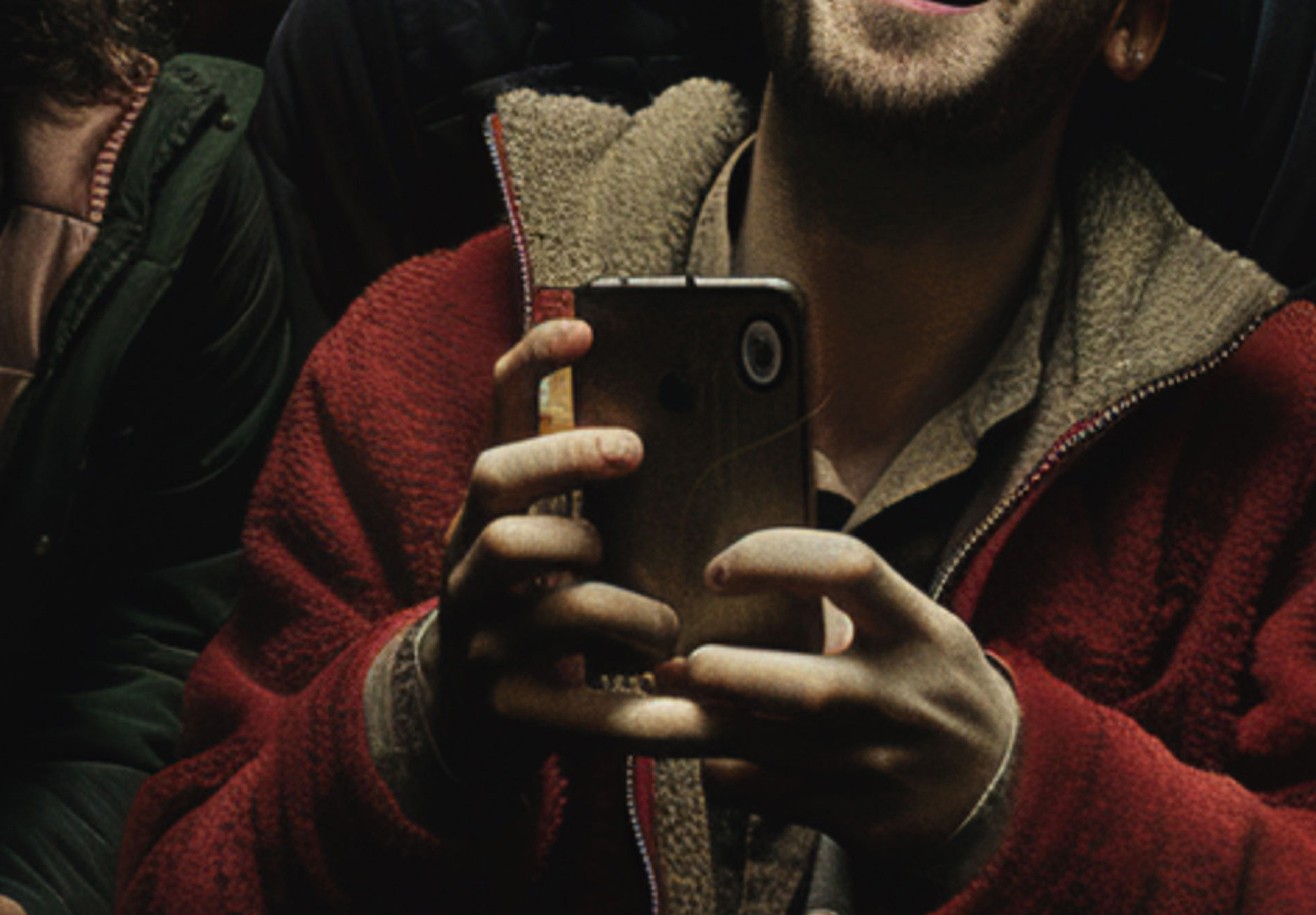 No cinema. A figura que segura o celular tem as mãos deformadas — Foto: Imagem gerada por IA/Midjourney