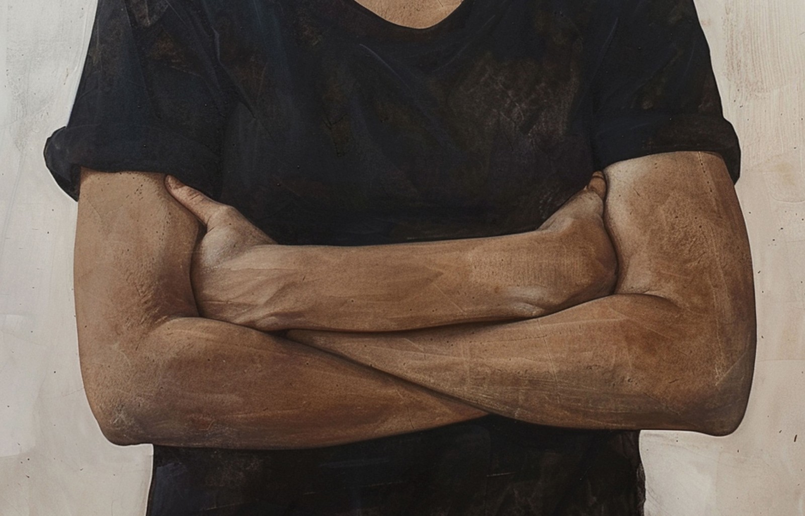 O que foi informado ao sistema de inteligência artificial: imagem exibe uma pessoa com os braços cruzados,não foi solicitado que aparecesse o rosto - foto: imagem criada por IA/Midjourney