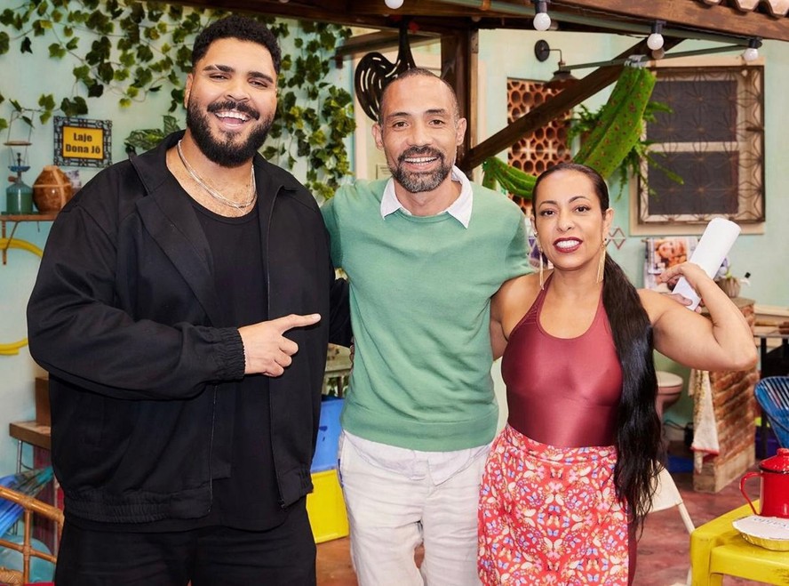 Paulo Vieira,Silvio Guindane e Samantha Schmütz nos bastidores do 'Vai que cola' — Foto: Divulgação