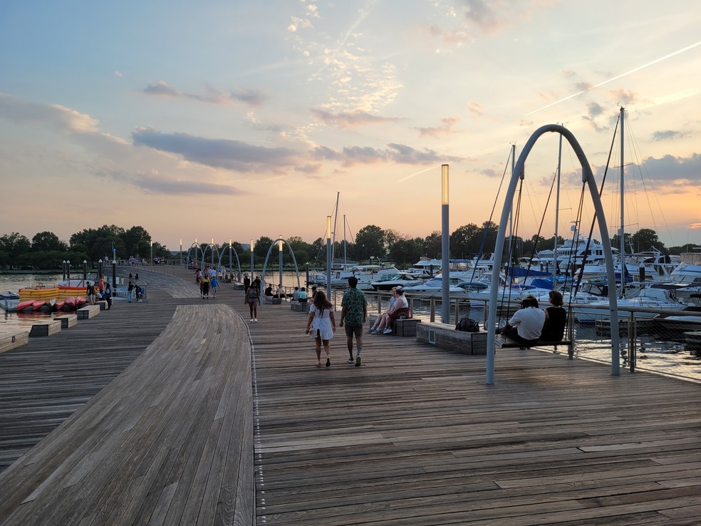 Georgetown tem também um agradável parque às margens do Potomac,onde fica um dos pontos do Water Taxi,um barco turístico que conecta o bairro a The Wharf,uma área revitalizada ao redor do mercado de peixe mais antigo da cidade,fundado em 1805. Nos últimos dez anos,a região passou por uma profunda transformação,ganhando prédios modernos que abrigam hotéis e condomínios sofisticados,restaurantes de todo tipo,marinas de luxo,uma popular casa de espetáculos e um píer para atividades náuticas. Mas a grande graça é caminhar pelo calçadão no fim da tarde,de preferência num fim de semana,e ver o sol se pondo no outro lado do rio,quando todo resto vira detalhe.