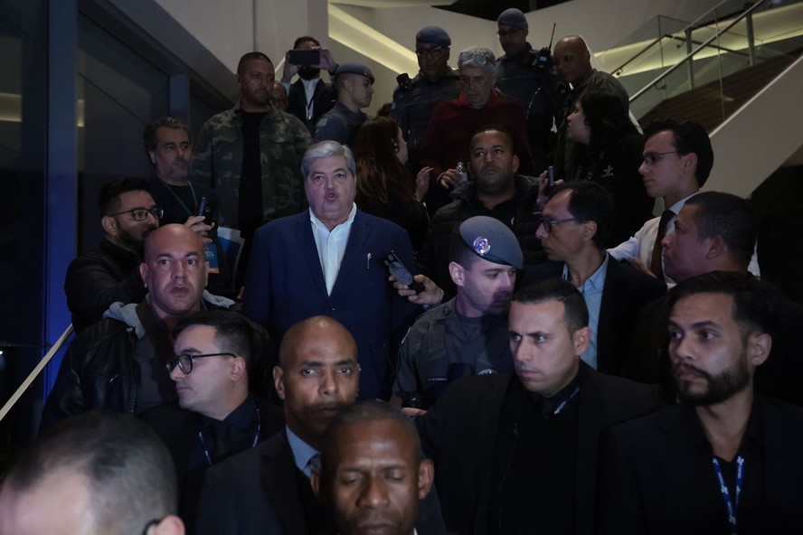 Datena fala com a imprensa após ser expulso do debate deste domingo — Foto: Maria Isabel Oliveira / O Globo