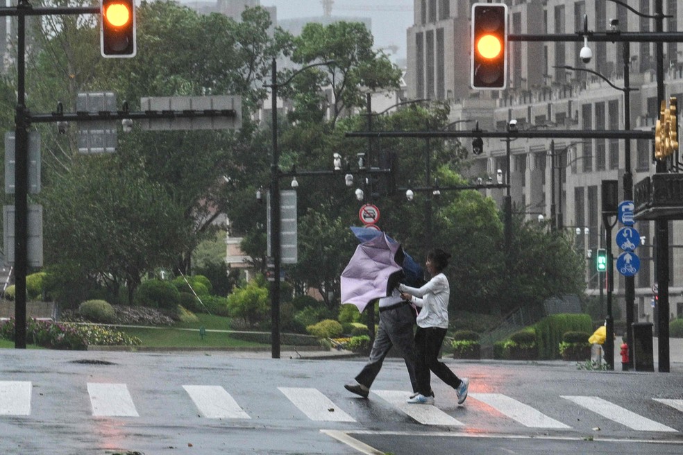 O serviço meteorológico emitiu,no domingo,o segundo nível máximo de alerta de tufão em vários distritos de Xangai e algumas áreas vizinhas.