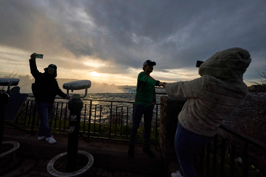 Pessoas se reúnem para acompanhar o eclipse lunar — Foto: AFP RESUMOSem tempo? Ferramenta de IA resume para você