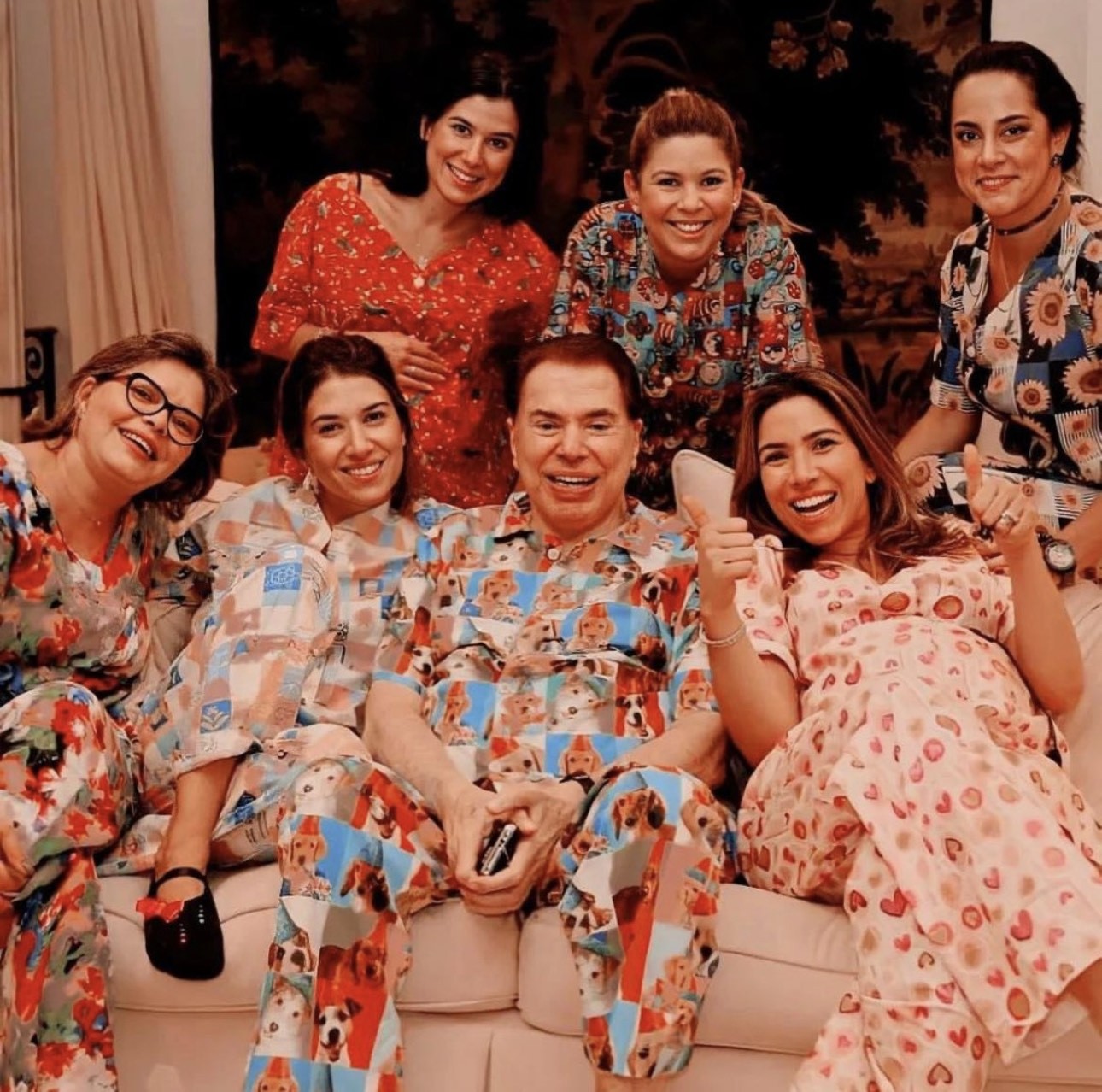 De pijama,Silvio Santos gostava de passar os Natais rodeado pelos netos,as filhas,os genros e a esposa — Foto: Reprodução Internet