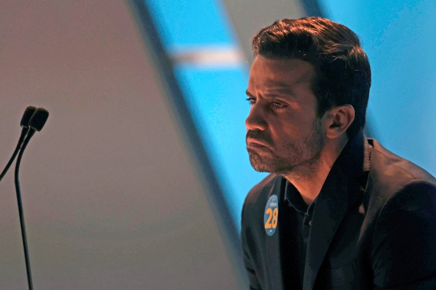 Pablo Marçal (PRTB) durante o debate RedeTV!/UOL — Foto: Maria Isabel Oliveira A imagem que Pablo Marçal construiu meticulosamente nesta campanha era de um homem forte e corajoso,que até tubarão