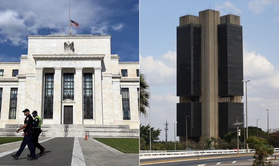 Banco Central americano e BC brasileiro — Foto: Fotos: Daniel SLIM / AFP e Jorge William / Agência O Globo