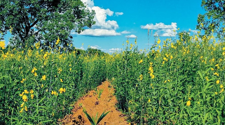 Mudas de Macaúba entre plantações de crotalárias na Fazenda Prata dos Netos,em Presidente Olegário (MG) — Foto: Divulgação