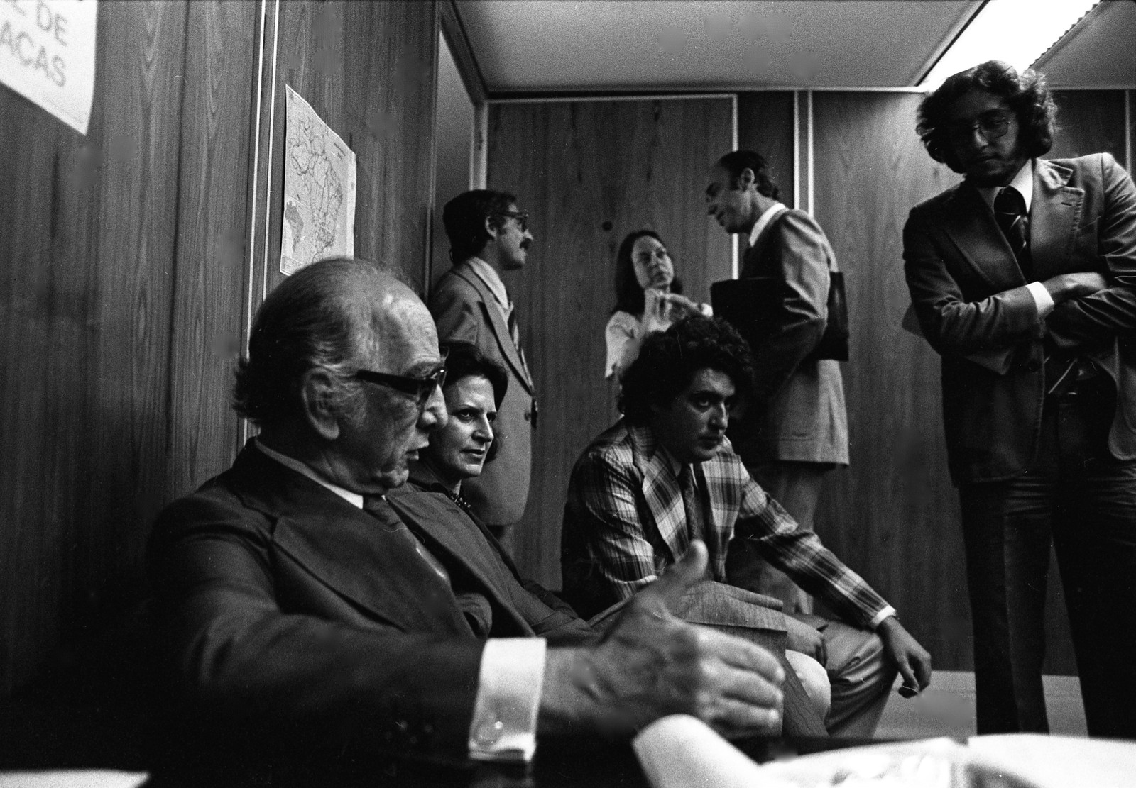 Em 1977,Lygia,junto de Hélio Silva (de óculos),Jeferson Ribeiro de Andrade (paletó xadrez) e Nélida Pinon (ao fundo),durante a entrega do Manifesto dos Escritores contra a Censura ao ministro da Justiça,Armando FalcãoAgência O Globo