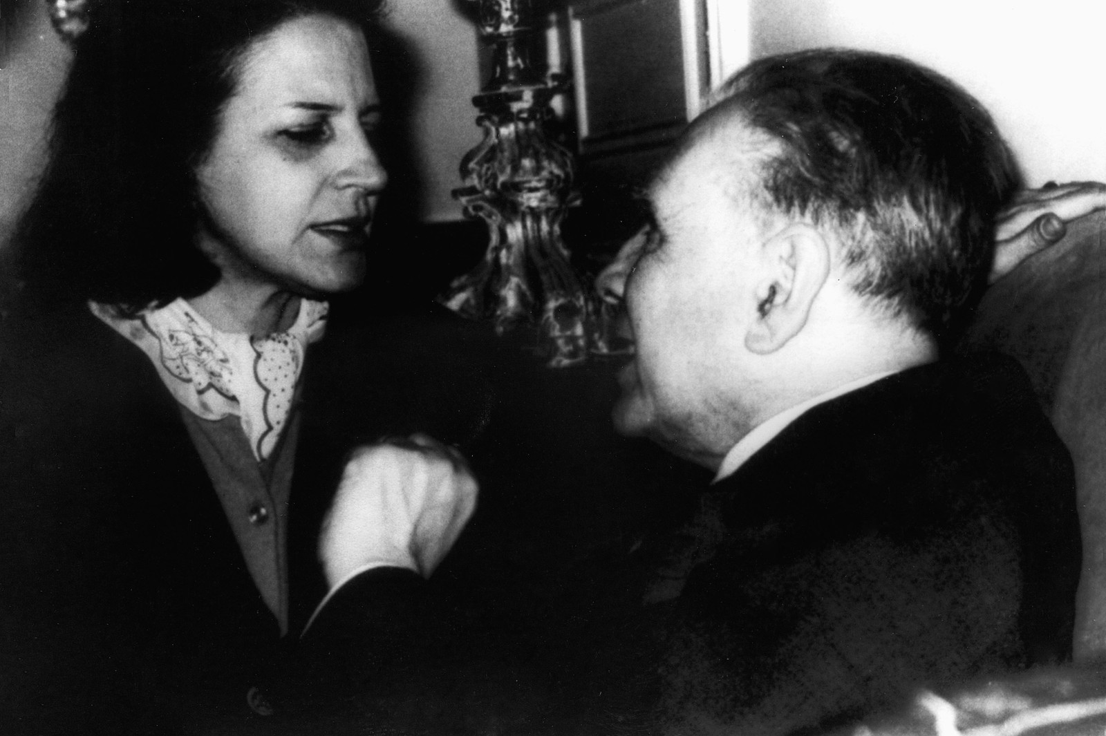 Lygia Fagundes Telles com o argentino Jorge Luis Borges,num jantar em São Paulo,em 1984Acervo Pessoal