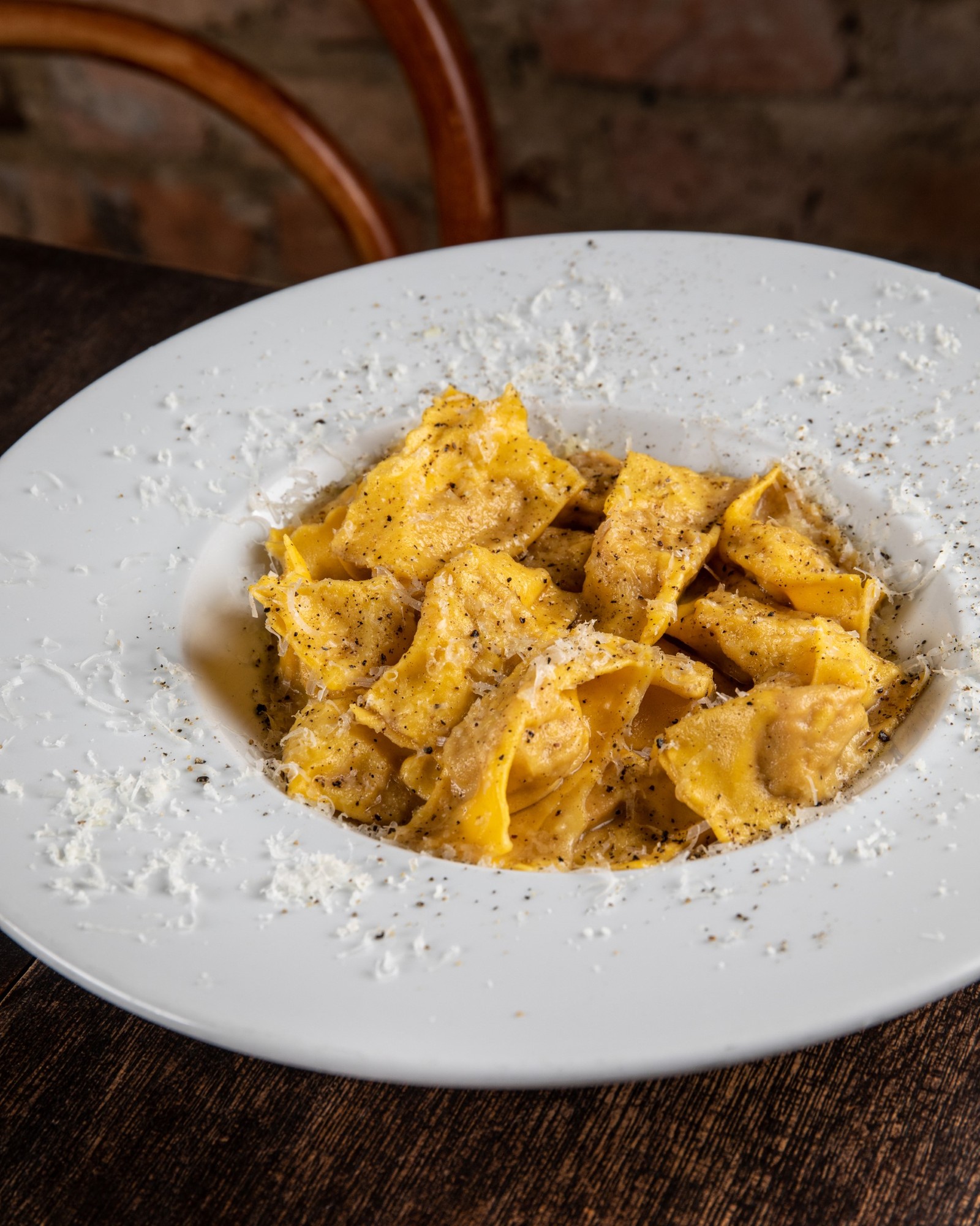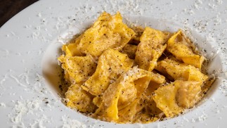 Grado: agnolotti de javali cacio e pepe,o preferido de Alberto Landgraf — Foto: Tomás Rangel