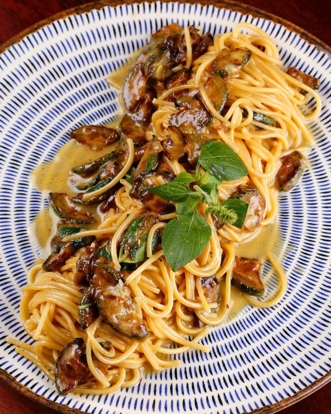 Spaghetti alla nerano: abobrinha frita,manteiga,manjericão e queijo,no Gávea Beach Club,em São Conrado — Foto: Reprodução