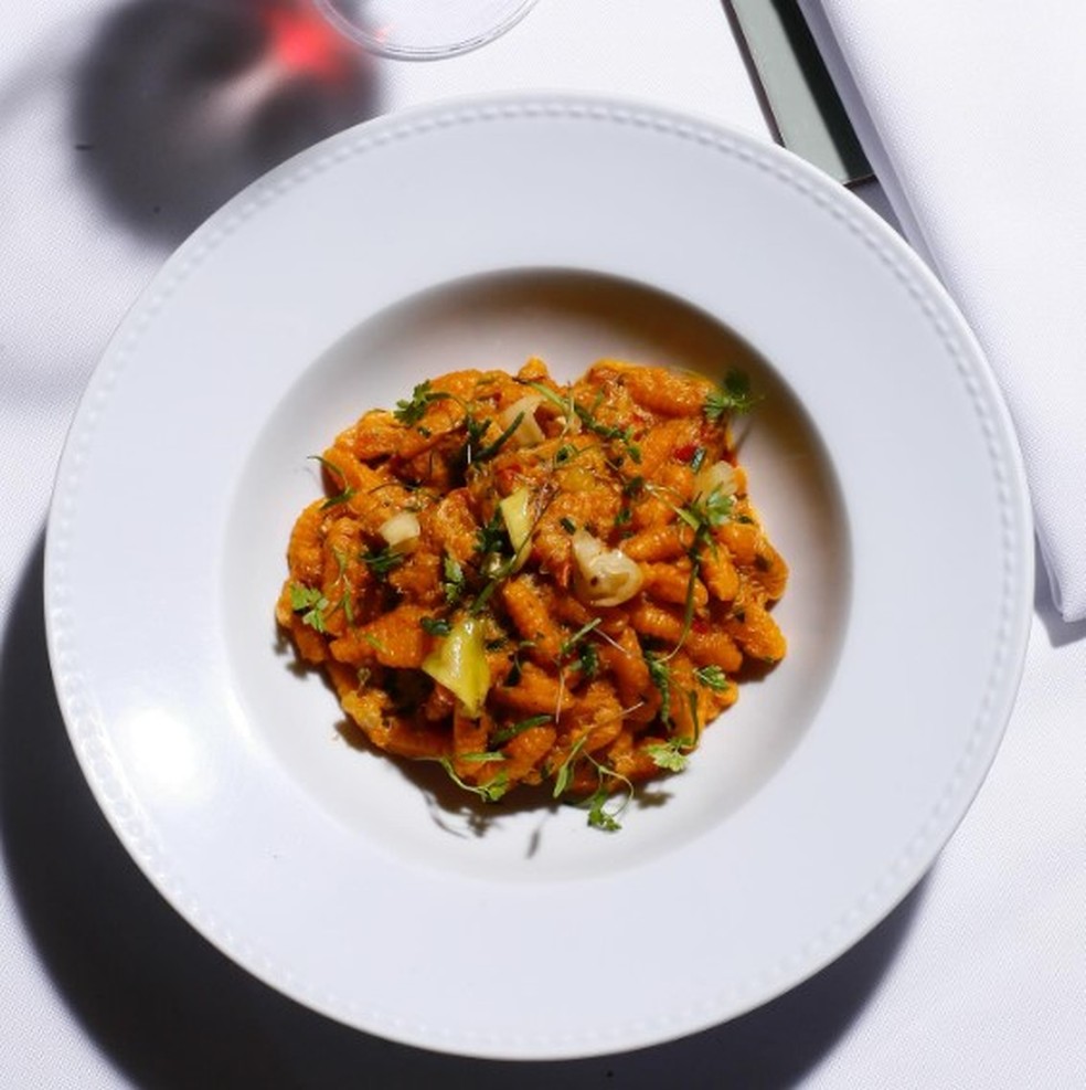 Prato de cavatelli com siri,picles de pimenta-de-cheiro e salicórnia do Sult — Foto: Divulgação/redes sociais