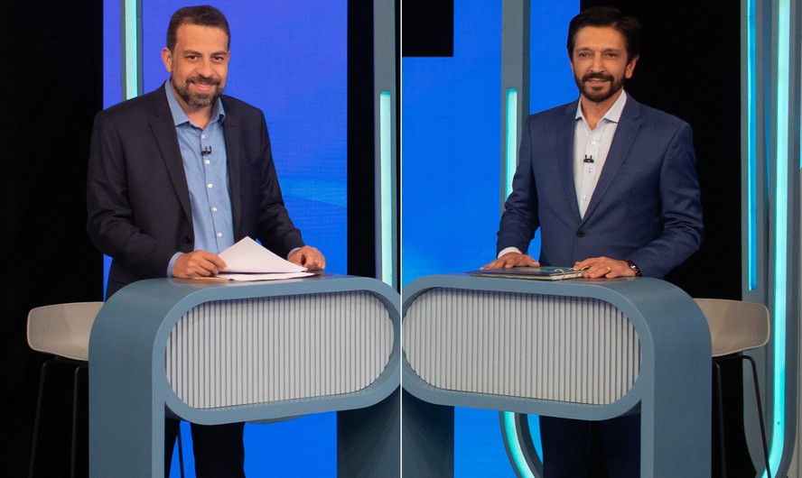 Guilherme Boulos (PSOL) e Ricardo Nunes (MDB) no debate da TV Globo — Foto: Edilson Dantas Candidatos à prefeitura de São Paulo,Ricardo Nunes (MDB) e Guilherme Boulos (PSOL) se enfrentam pela últ