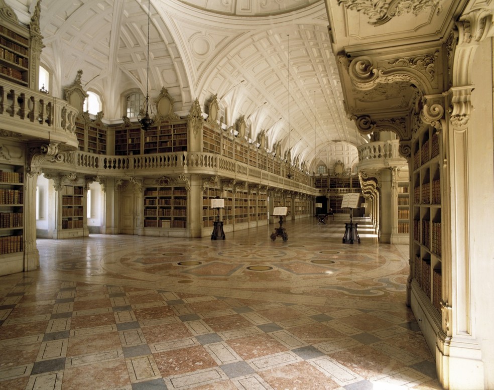 Biblioteca do Palácio Nacional de Mafra,antigamente chamado de Convento de Mafra,que inspirou o romance 'Memorial do convento',de José Saramago Turismo de Portugal / Divulgação — Foto: O Globo
