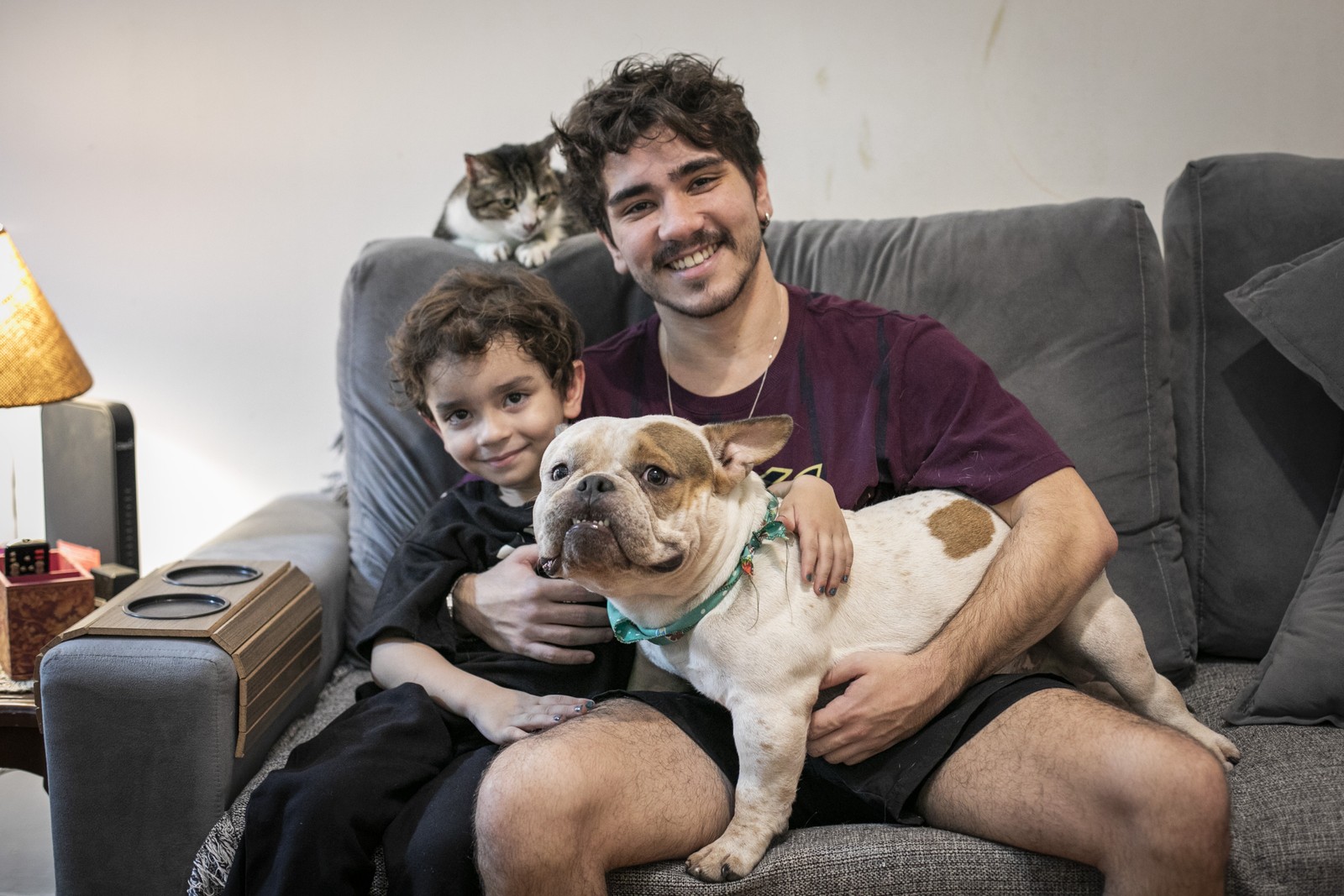 João com o filho e seus animais de estimação — Foto: Guito Moreto