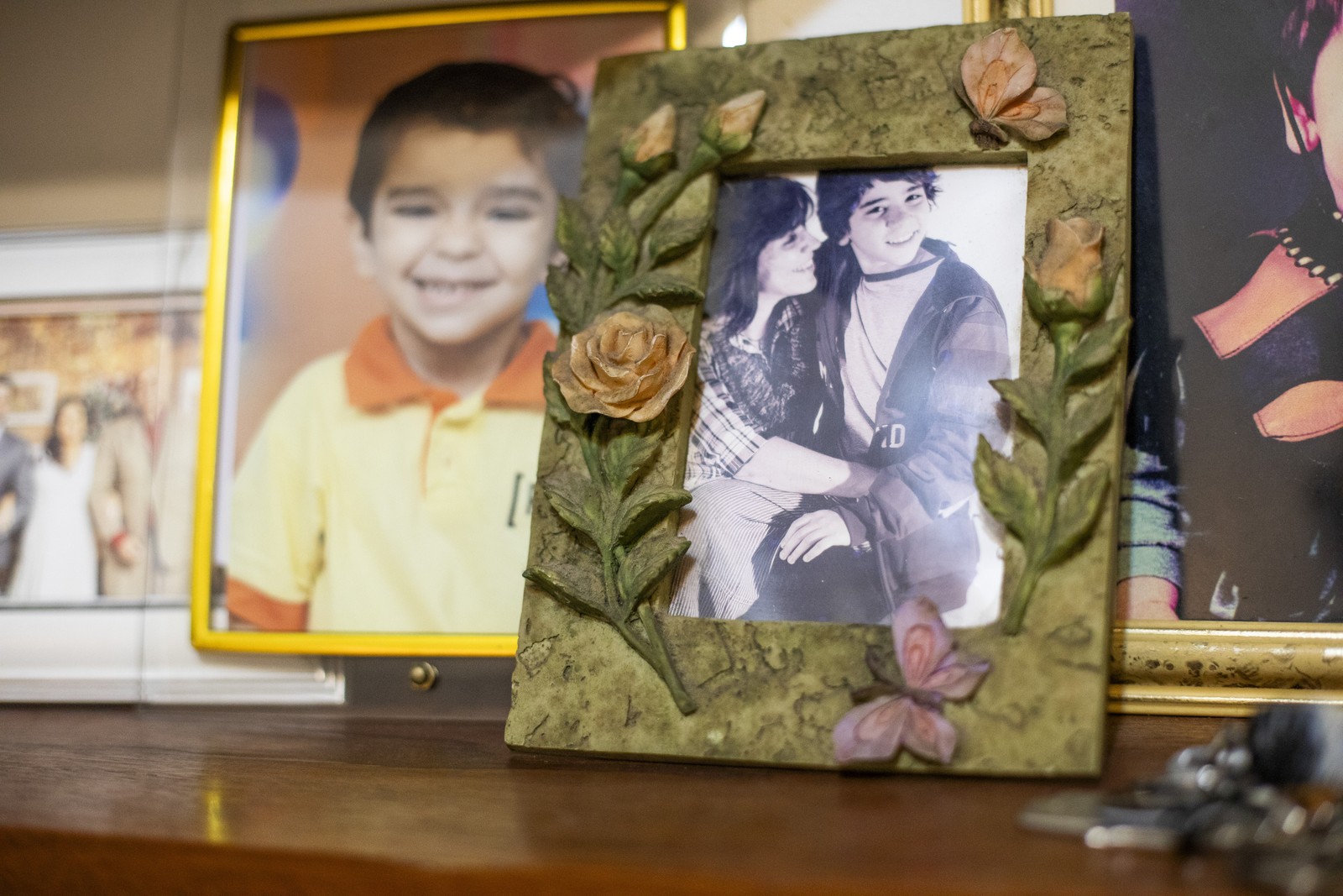Porta-retratos na casa do ator João Fernandes — Foto: Guito Moreto