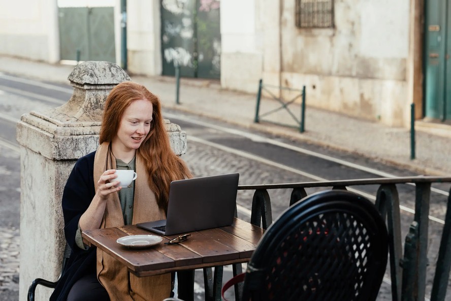 Após uma temporada eleitoral exaustiva,alguns moradores dos EUA estão considerando se mudar e trabalhar no exterior. Acima,uma trabalhadora remota em Lisboa — Foto: Alina Rudya/Bell Collective/Get