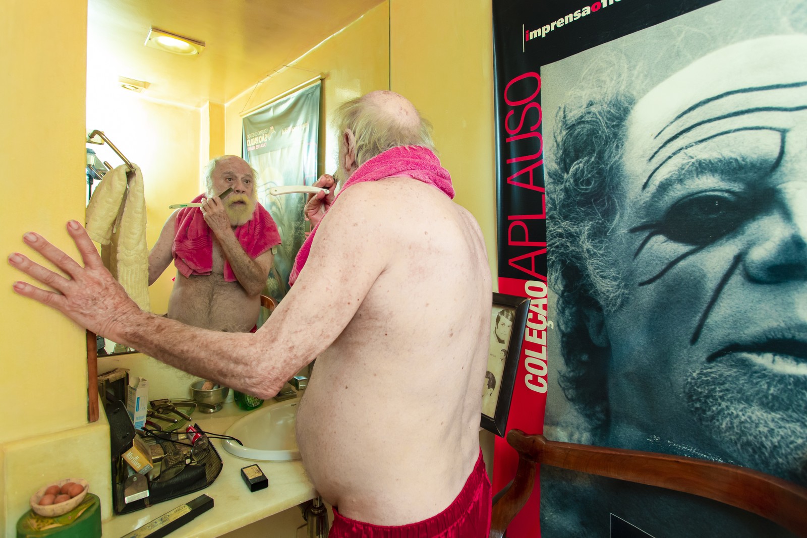 O ator montou uma barbearia no banheiro social — Foto: Leo Martins / Agência O Globo