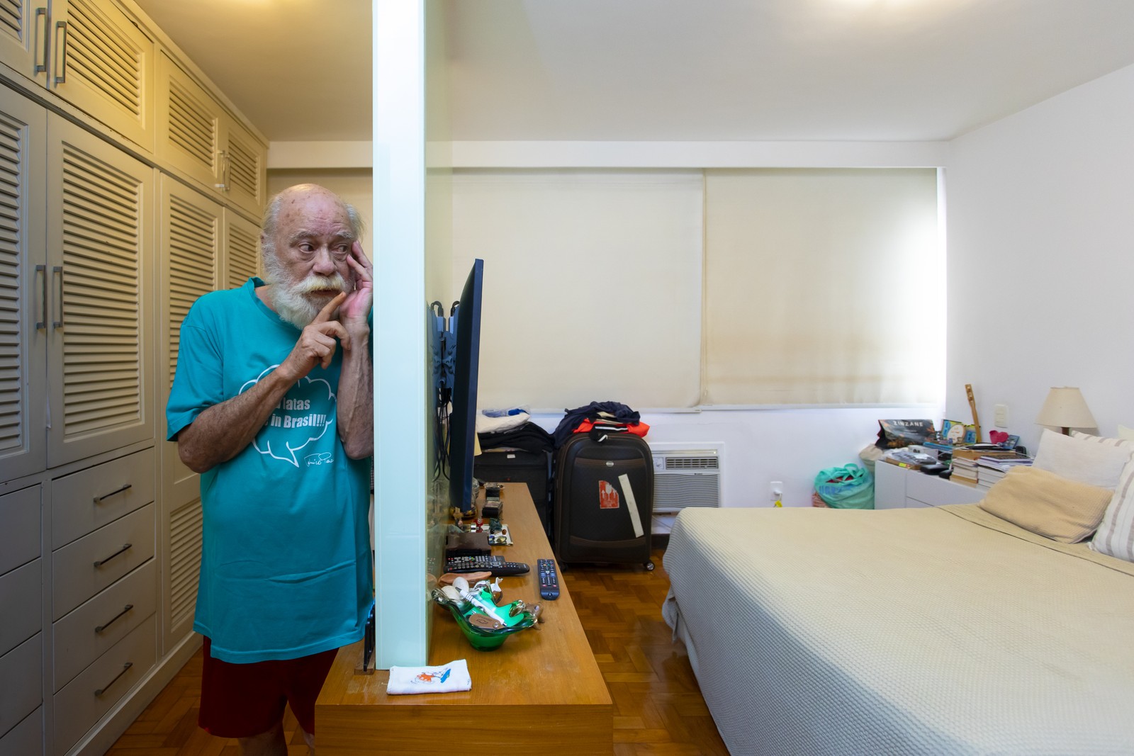 Tonico Pereira no seu quarto — Foto: Leo Martins / Agência O Globo