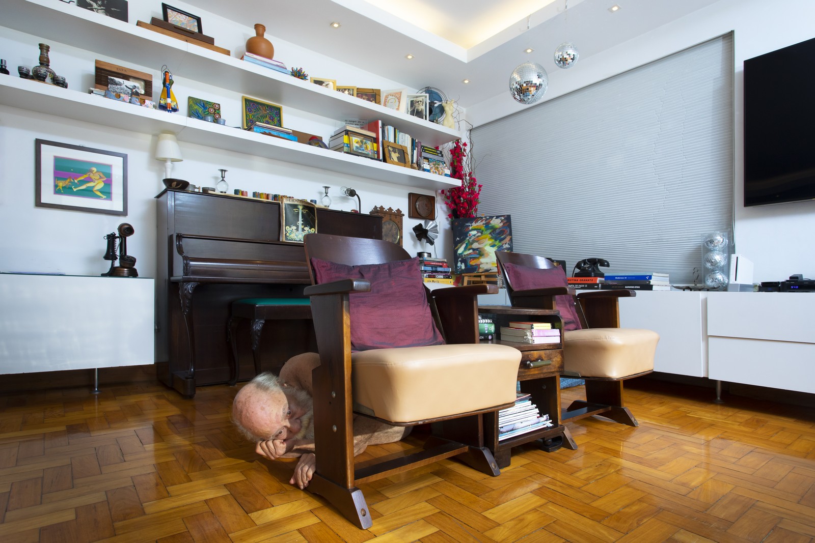 Tonico brinca na sala de casa durante a sessão de fotos — Foto: Leo Martins / Agência O Globo