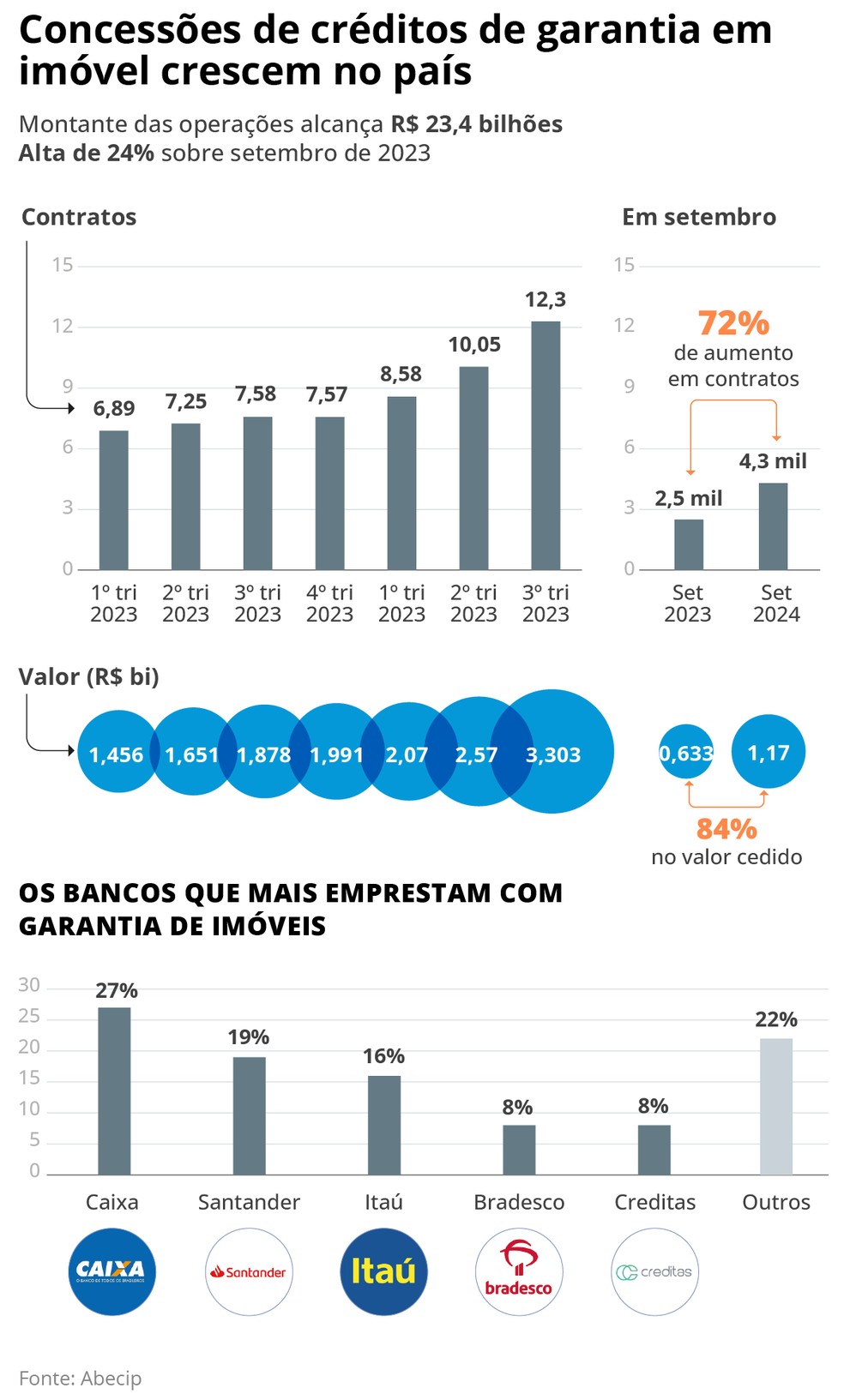 Concessão de empréstimos com garantia em imóvel no Brasil vem crescendo — Foto: Editoria de Arte