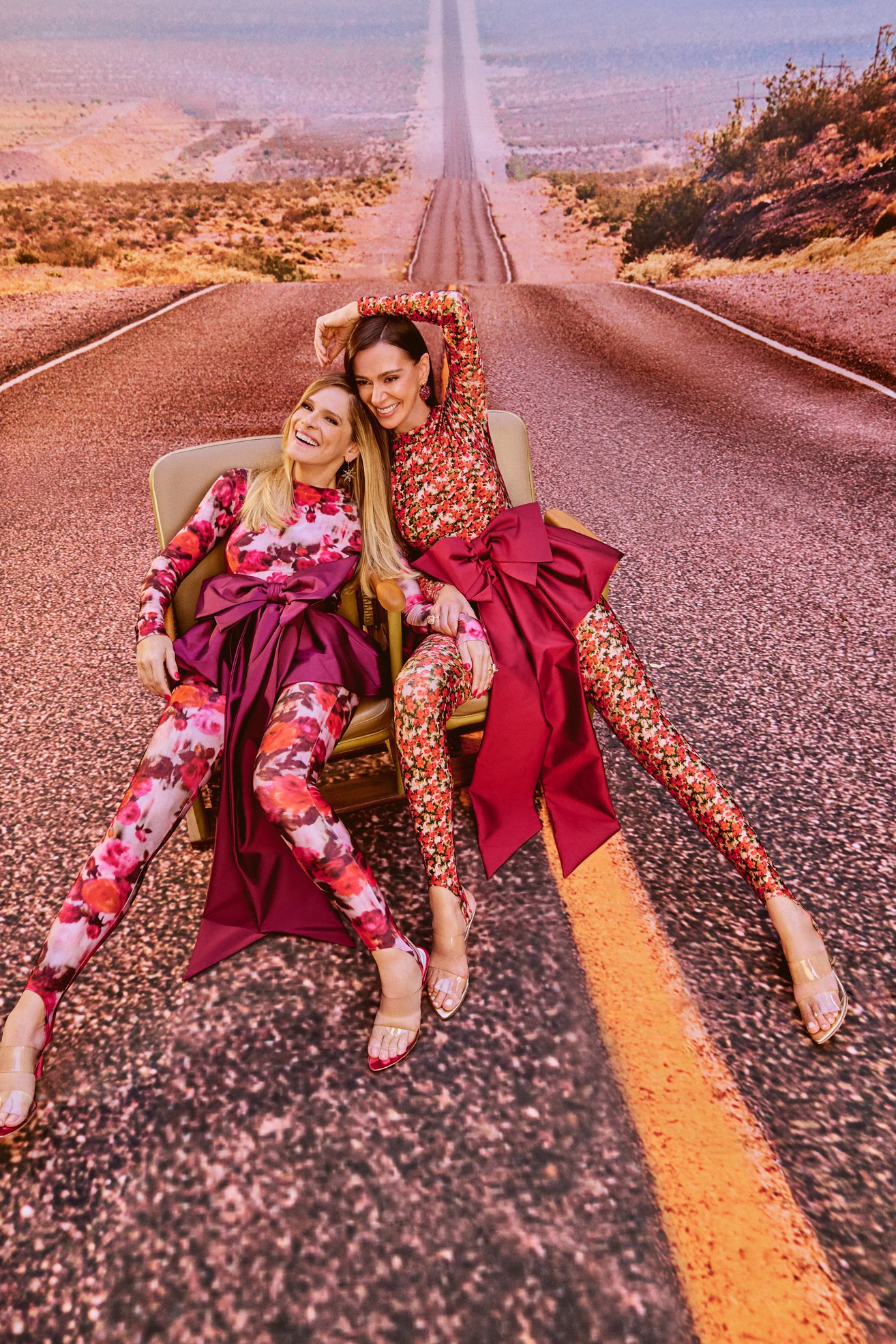 Ingrid e Mônica vestem Paula Raia,sandálias Manolita e brincos e anéis Sauer — Foto: Fábio Bartelt