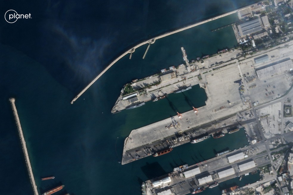 Imagem de satélite da base naval de Tartus,na Síria — Foto: AFP PHOTO / PLANET LABS PBC
