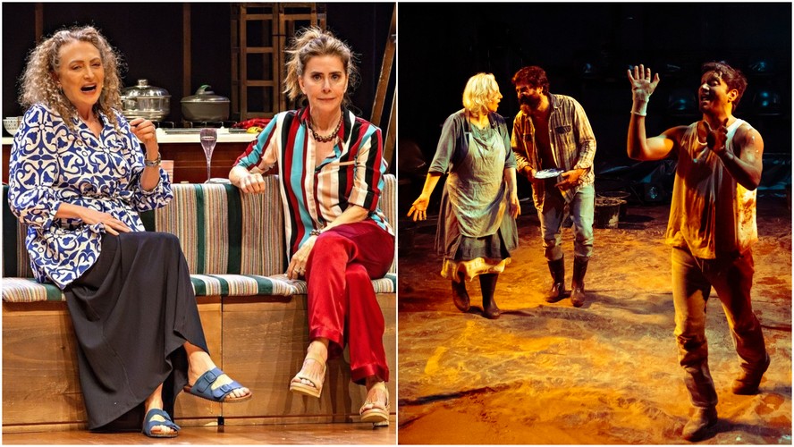 À esquerda,cena de 'Duas irmãs e um casamento'; à direita,o espetáculo 'Tom na fazenda' — Foto: Divulgação/Douglas Jacó e Leo Martins/Agência O Globo