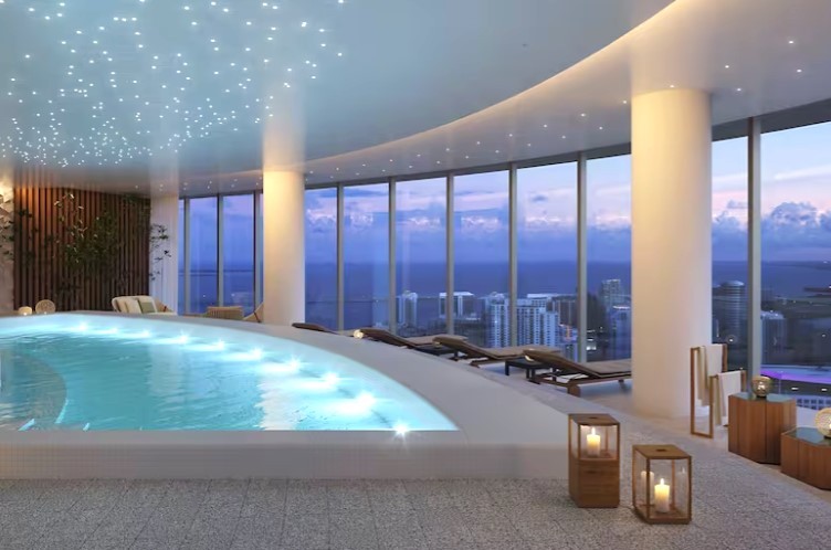 Torre tem piscina nas alturas — Foto: Divulgação/Aston Martin Residences